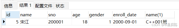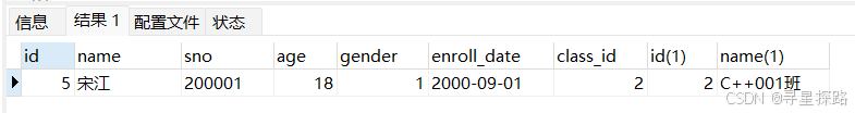 select * from student, class where student.class_id = class.id and name = '宋江';