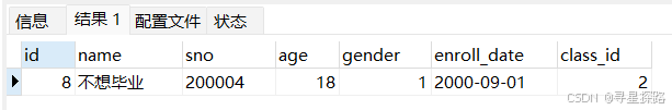 ('不想毕业', '200004', 18, 1, '2000-09-01', 2);