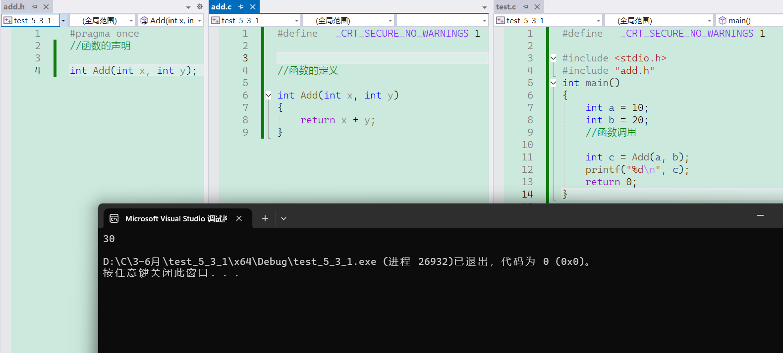 int Add(int x, int y);test.c