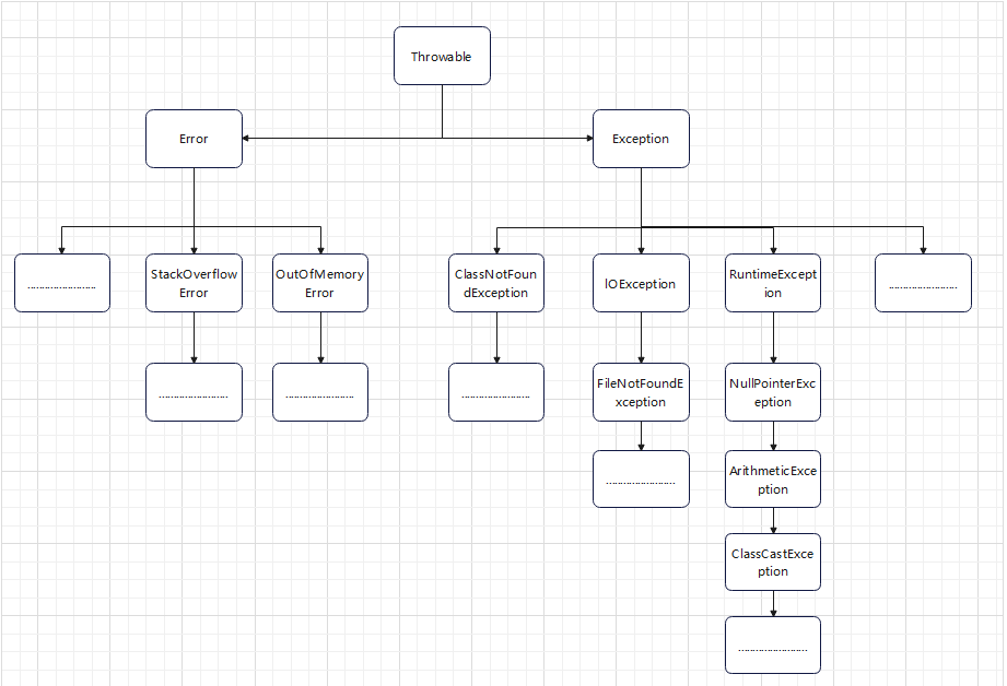 异常种类繁多,为了对不同异常或者错误进⾏很好的分类管理,Java内部维护了⼀个异常的体系结 构: