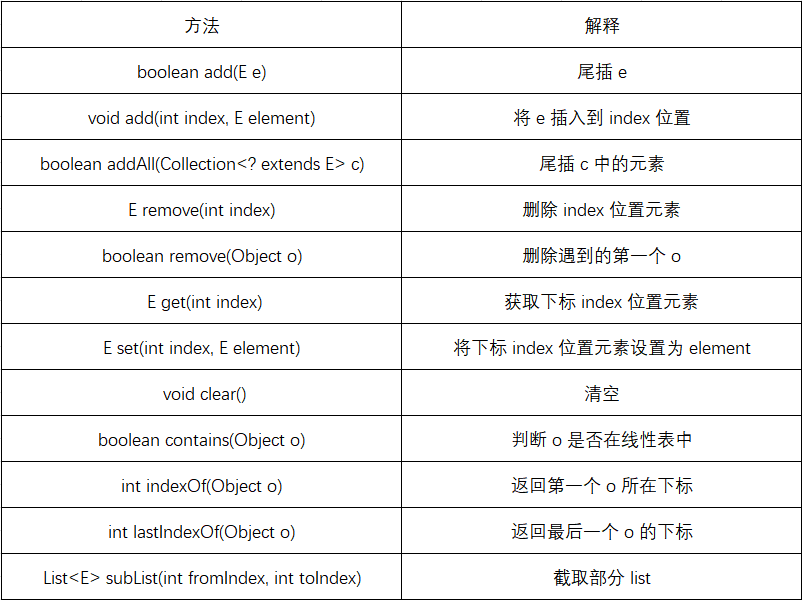 }ArrayList虽然提供的方法比较多,但是常用方法如下所示