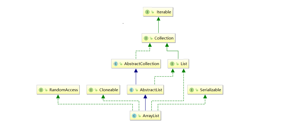 }在集合框架中,ArrayList是一个普通的类,实现了List接口,具体框架图如下: