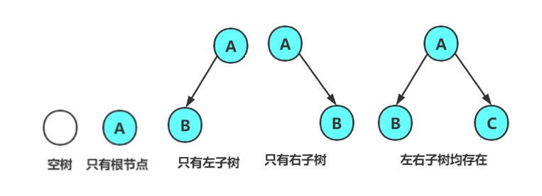 #注:对于任意的二叉树都是由以下几种情况复合而成的: