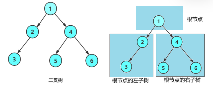 (2)非空:根节点,根节点的左子树、根节点的右子树组成的。