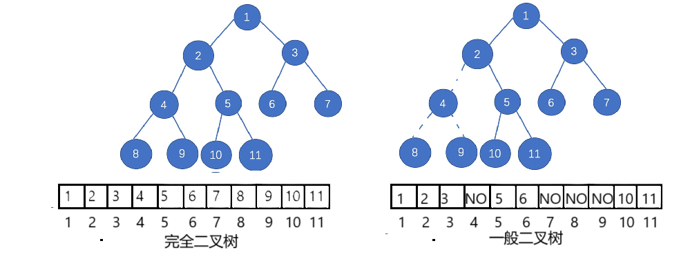 注意:对于非完全二叉树,则不适合使用顺序方式进行存储,因为为了能够还原二叉树,空间中必须要存储空节点,就会导致空间利用率比较低。