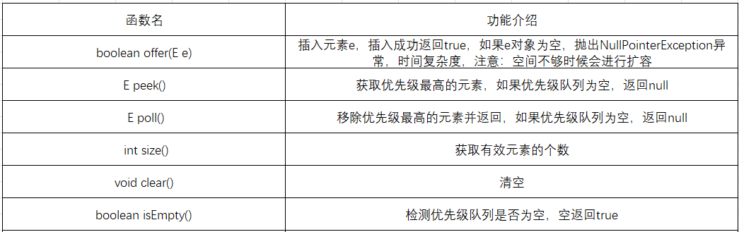 }#注:默认情况下,PriorityQueue队列是小堆,如果需要大堆需要用户提供比较器