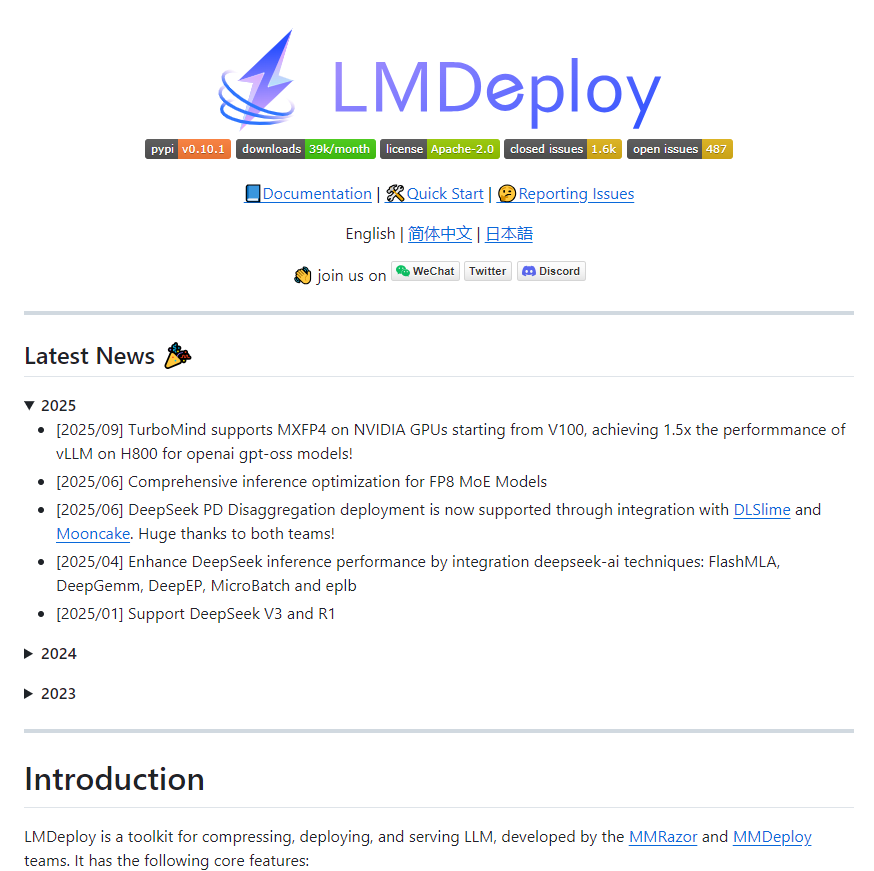 2025年9月26日,lmdeploy v0.10.1 正式发布。本次更新为开发者带来了包括 ROCm 支持、FP8(B)F16 GEMM、GLM-4.5 兼容* 在内的一系列新功能,同时在性能优化、Bug 修复等方面也有明显提升。以下是本次版本的详细更新内容。