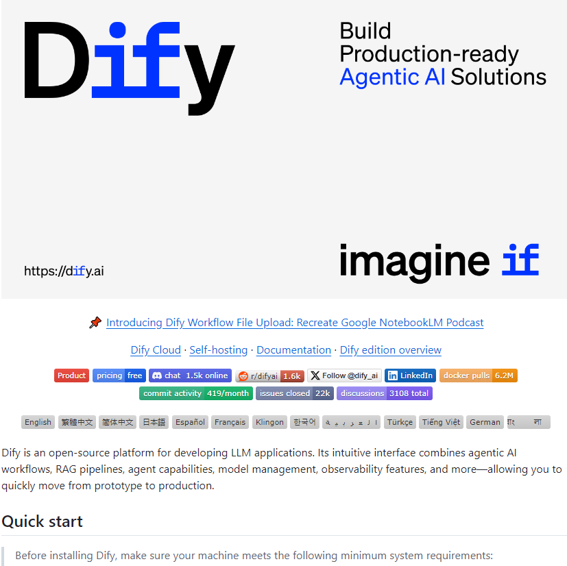 uv syncuv run flask db upgradeDify 1.9.1不仅是一个功能改进版本,更是一个值得铭记的里程碑版本。在保持性能优化和用户体验提升的同时,它为多语言部署、插件管理、文件处理和工作流等核心功能提供了更稳定和可扩展的支持。
