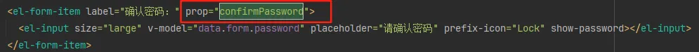 <el-input size="large" v-model="data.form.confirmPassword" placeholder="请确认密码" prefix-icon="Lock" show-password></el-input>