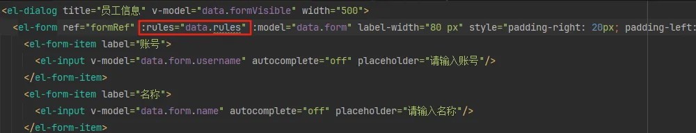 另外rules的username是需要和对话框表单的prop对应起来,例如: