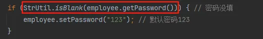 if (StrUtil.isBlank(employee.getPassword())) { // 密码没填