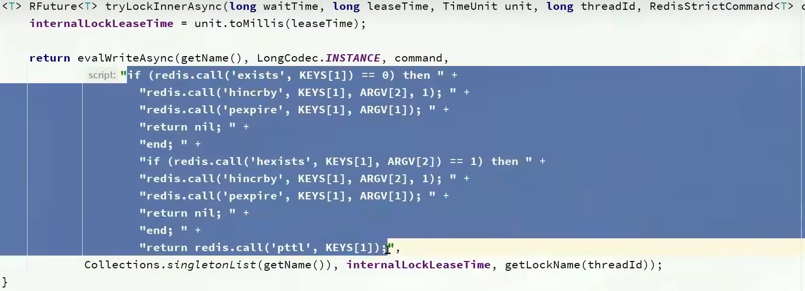 RFuture<Long> ttlRemainingFuture = tryLockInnerAsync(