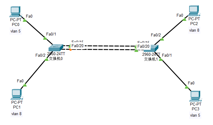 Switch(config-if)#swithport mode trunk4、查看端口汇聚情况