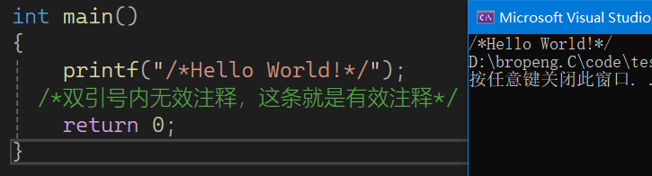 当然,请注意,如果注释符号是字符串中的一部分,则不会起注释作用,而是直接打印出来