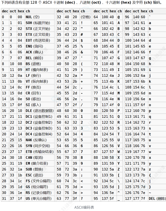 如果我们每个⼈⾃⼰给这些字符中的每个字符编⼀个⼆进制序列,这个叫做编码,为了⽅便⼤家相互通信,不造成混乱,后来美国国家标准学会(ANSI)出台了⼀个标准 ASCII 编码,C