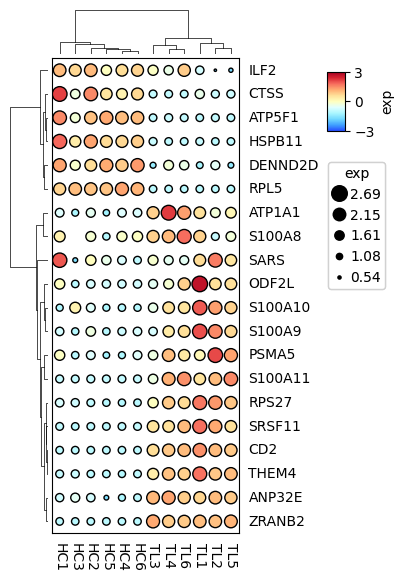 #在做点图之前需要先进行scale计算Z-score,因为DotClustermapPlotter没有z-score选项