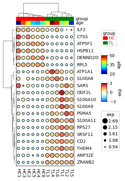 DotClustermapPlotter(data=df_plt, #需要plot的data数据,长数据格式