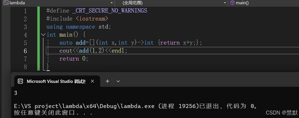 1.lambda 表达式本质是一个匿名函数对象,跟普通函数不同的是它可以定义在函数内部。