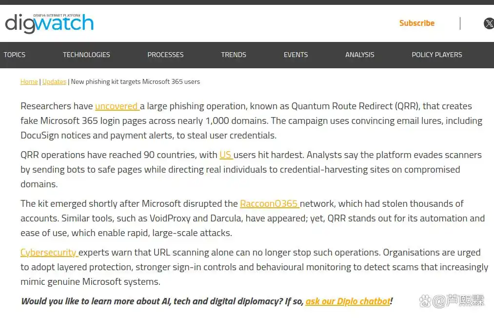 2025年11月,安全社区披露了名为“Quantum Route Redirect”(QRR)的新型钓鱼工具包,专门针对Microsoft 365用户。与早期工具不同,QRR具备三大特征:(1)前端界面高度仿真且支持多语言动态适配;(2)后端集成智能反检测模块,可区分真实用户与自动化扫描器;(3)高级版本支持实时中间人代理,绕过多因素认证。该工具包以即用型套件形式在地下论坛销售,售价约200–500美元/月,使得无技术背景的犯罪分子亦可发起专业级攻击。