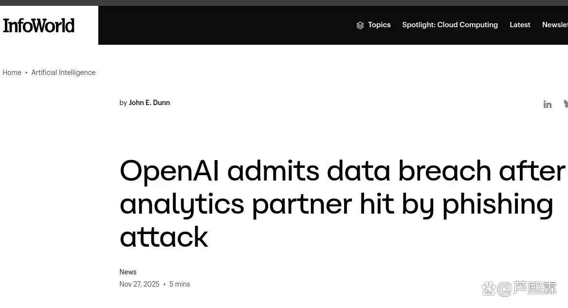 随着人工智能系统的复杂性与模块化程度不断提升,大型AI平台如OpenAI已高度依赖外部服务商完成日志分析、用户行为追踪、性能监控等非核心但关键的功能。这种分工虽提升了开发效率与运营灵活性,却也显著扩大了攻击面。2025年11月,OpenAI公开承认其分析合作伙伴Mixpanel因员工遭遇鱼叉式钓鱼攻击,导致部分OpenAI API客户的元数据被窃取。攻击者通过伪装成OpenAI官方通信的邮件诱导员工点击恶意链接,进而获取内部系统凭证,最终横向移动至存储客户分析数据的数据库。