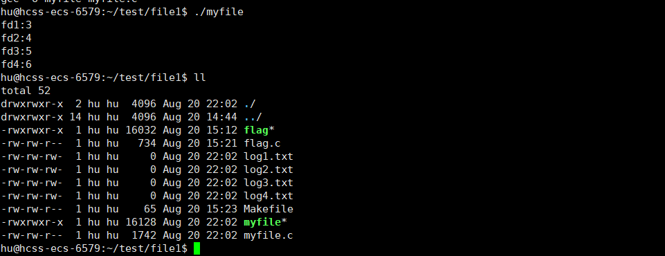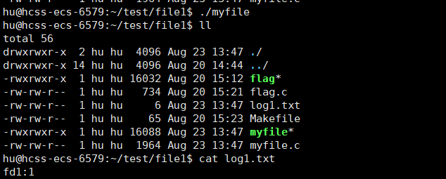 当我们关闭1时,虽然./myfile没有输出,但是1写进了log1.txt中。