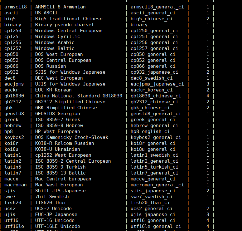 字符集主要是控制用什么语言。比如 utf8 就可以使用中文。