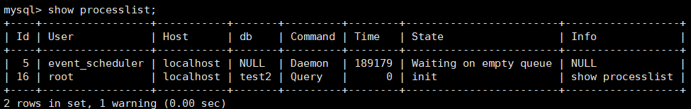 可以告诉我们当前有哪些用户连接到我们的 MySQL ,如果查出某个用户不是你正常登陆的,很有可能你的数据库被人入侵了。以后大家发现自己数据库比较慢时,可以用这个指令来查看数据库连接情况。