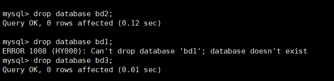 DROP DATABASE [IF EXISTS] db_ name;执行删除之后的结果:
