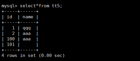 2 rows in set (0.00 sec)mysql> insert into tt5(name) values ('qqq');