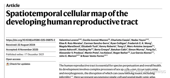 顶刊分享--人类生殖道发育的时空细胞图谱
