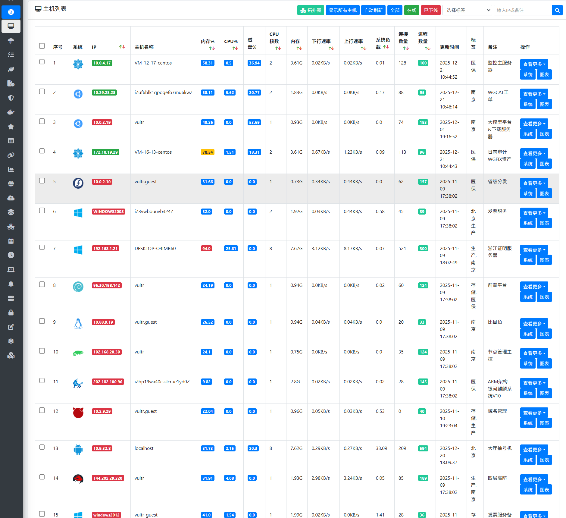 19. 优化,agent终端运行统计模块,查询条件新增支持主机备注和主机名称查询