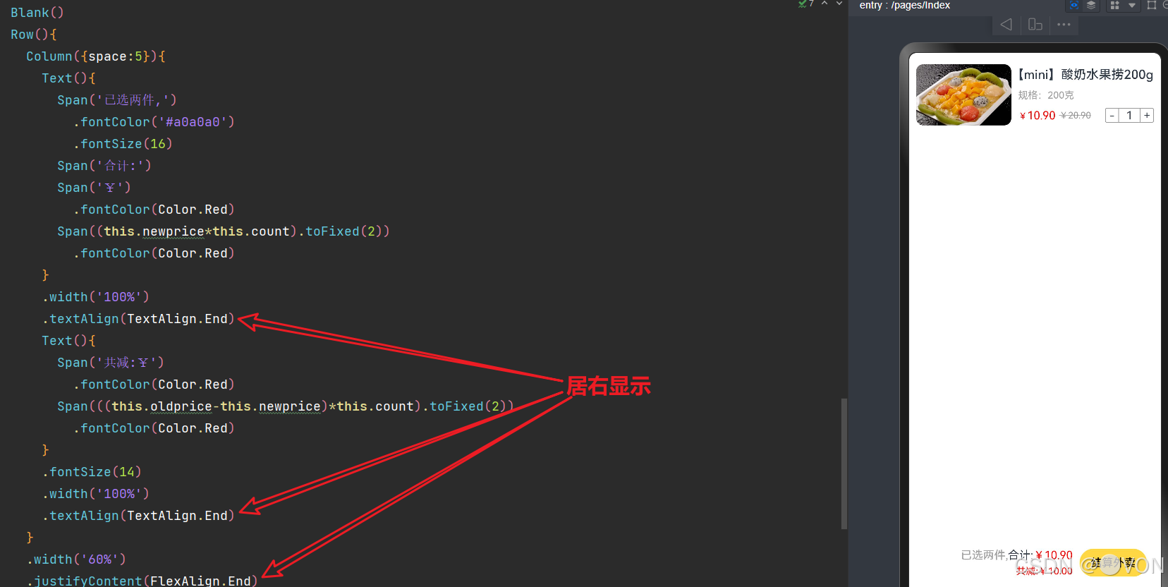 注:此处用到了Blank组件,是为了价格和上述文字之间产生间距