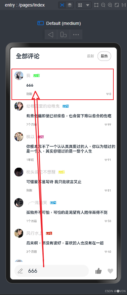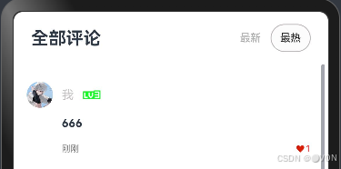 最新和最热点击时显示的效果不同,并且列表所展示的也不同。点击最新时评论的内容会根据时间进行排序,最热时会根据点赞数进行排序。