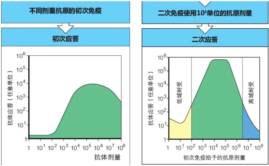 高剂量:极高的抗原剂量反而可能导致免疫应答下降(高带耐受)。