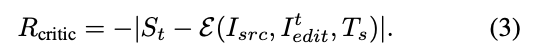 评论者奖励。 该组件训练 EditThinker 成为一个更准确的评论者。模型输出预测分数 (包括 和 ),这些分数应与编辑结果的实际质量保持一致。本文使用 GPT-4.1 作为评论专家 (E) 来评估结果图像 。评论者奖励 惩罚预测误差,如下所示: