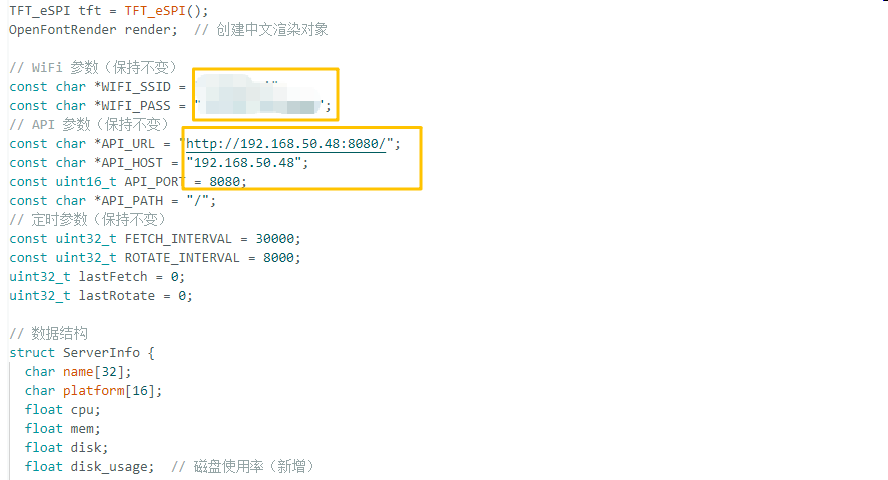 修改主程序中的WiFi信息和后端API端口,编译上传即可。