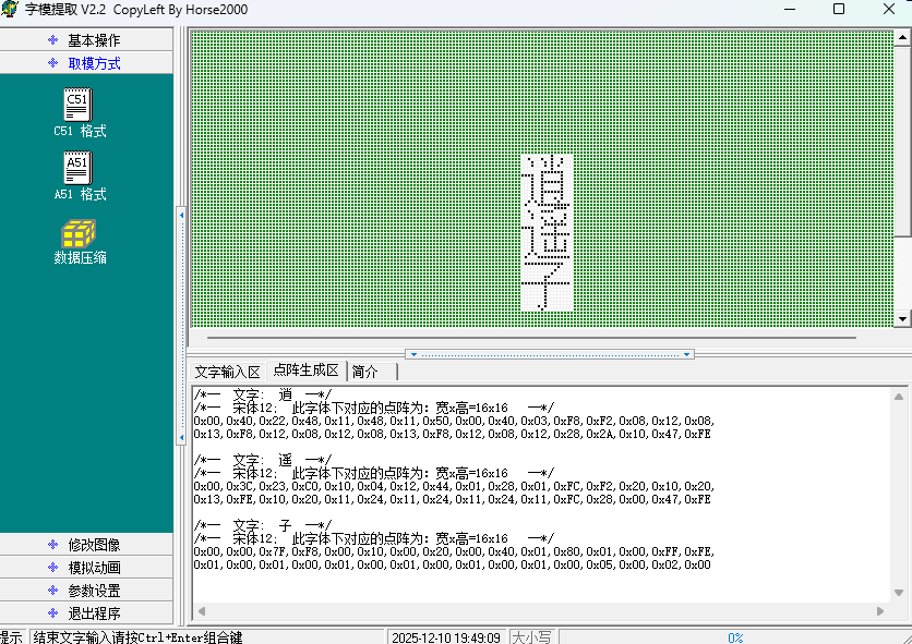 TFT_eSPI 库对汉字的支持并不友好。我们需要利用字模软件对所需要的汉字进行编码。