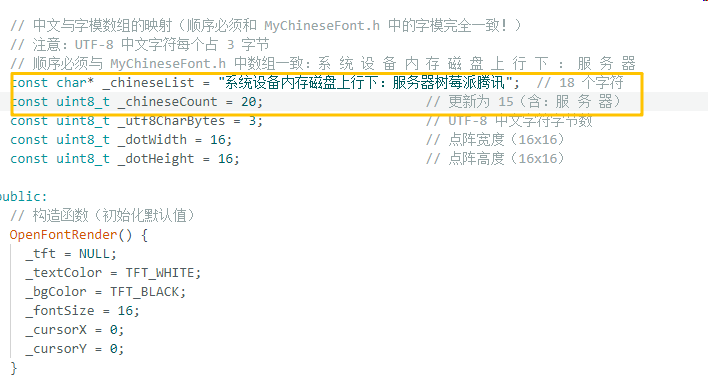 同时,修改OpenFontRender.h文件,添加刚才新增的汉字的信息和数量。