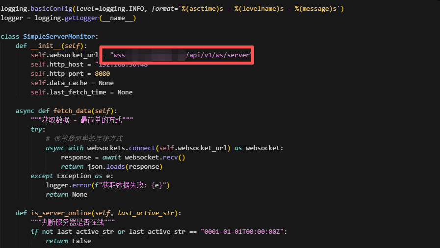注意,修改你的WSS地址和内网IP地址(为了安全,建议在内网运行脚本)