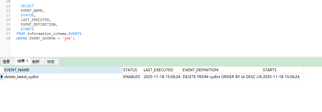 通过information_schema.EVENTS表,可以详细监控事件状态: