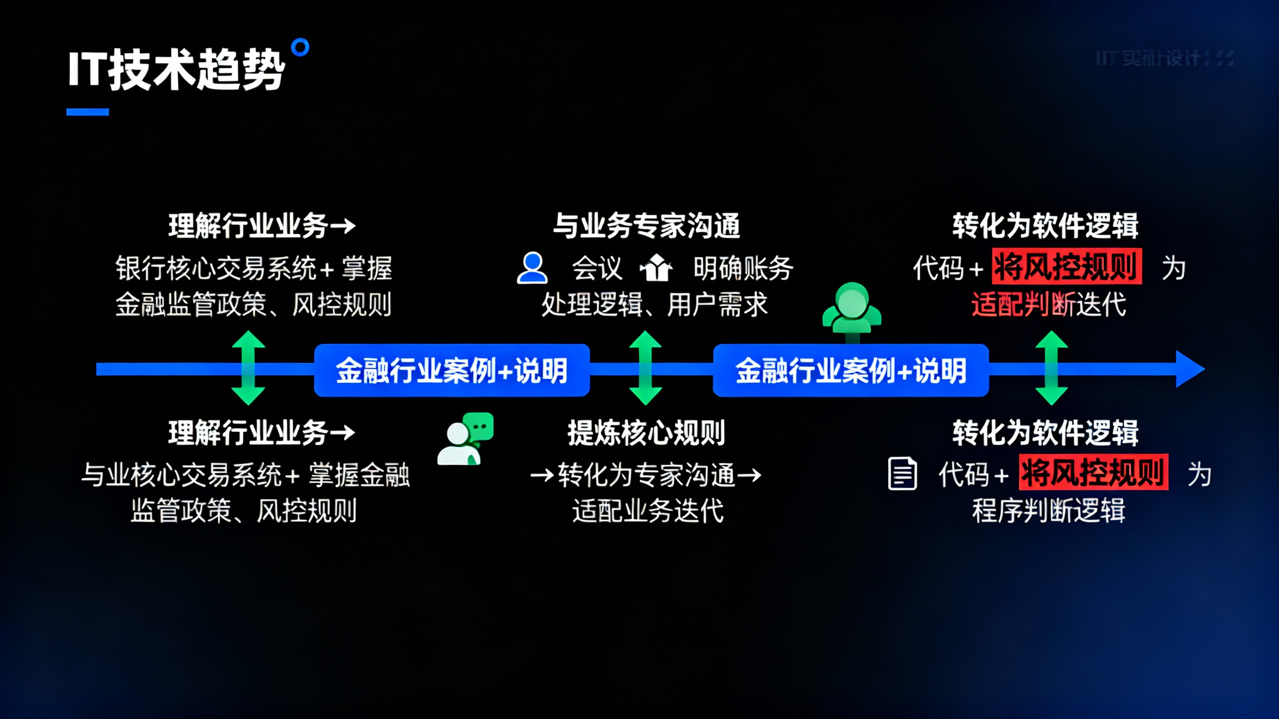 软件的核心价值是解决业务问题,而不是单纯的技术堆叠。把金融、医疗、制造等行业的复杂业务规则,转化为健壮、可靠的软件逻辑,需要IT从业者深入理解行业痛点,与业务专家高效沟通,甚至要具备一定的行业知识储备。这种“技术与业务的翻译能力”,是AI无法替代的。