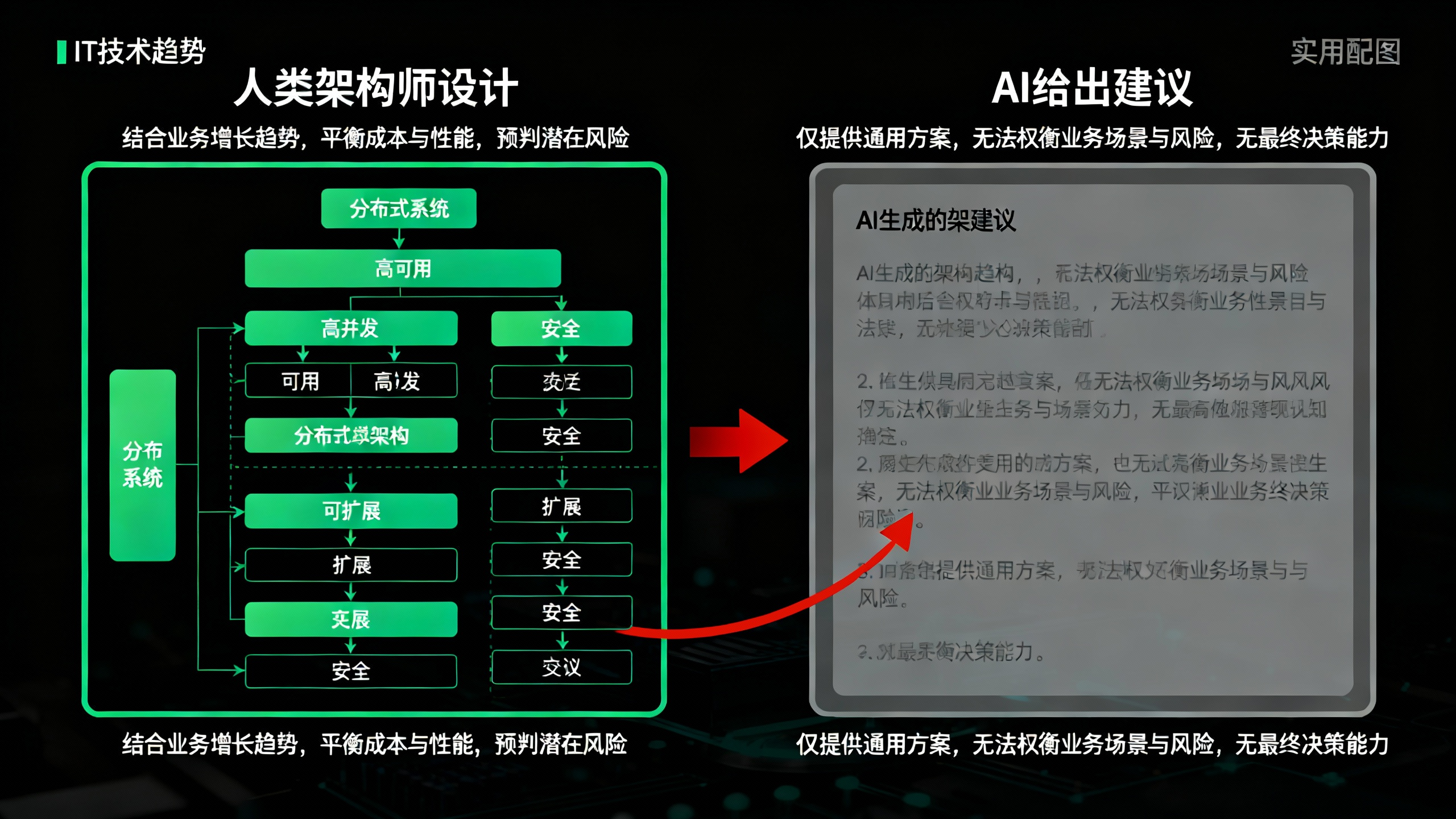 AI或许能给出一些架构建议,但它无法权衡复杂的业务场景和潜在风险,也无法做出最终的决策。就像盖房子,AI能帮你砌砖,但无法替代建筑师完成整体的设计蓝图。