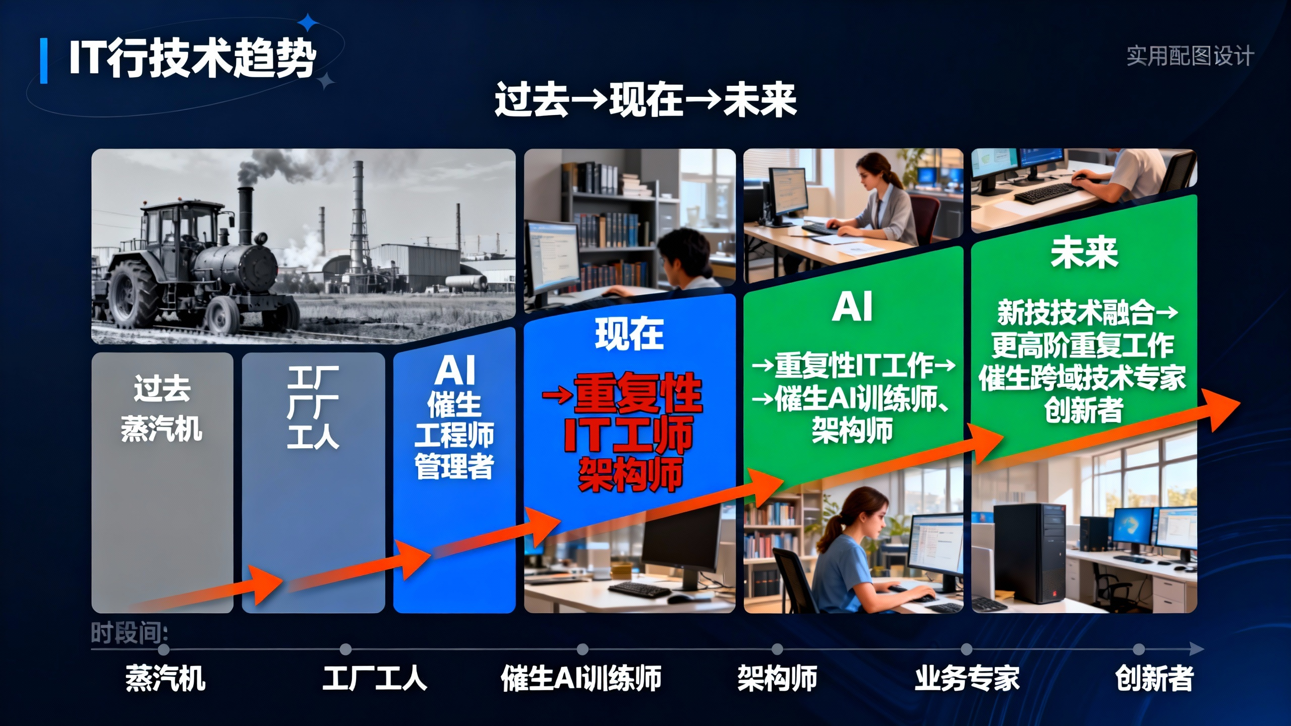 回顾历史,每一次技术革命都不是简单地消灭岗位,而是重构岗位的价值。蒸汽机没有让所有工人失业,而是催生了工程师和工厂管理者;计算机没有取代所有白领,而是创造了庞大的软件产业。AI也是如此,它不会取代IT从业者,只会取代“不会用AI的IT从业者”。