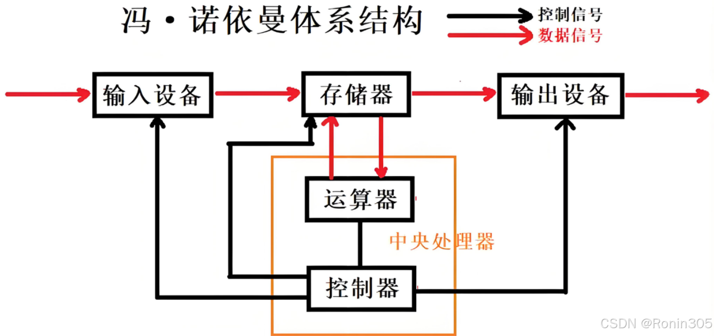 🌰 通俗理解: 计算机像“厨房”,存储器是“冰箱”(存放菜谱和食材),CPU是“厨师”(按菜谱取食材加工),输入是“送菜员”,输出是“传菜窗口”。冯诺依曼的创新在于——菜谱和食材都放同一个冰箱,厨师按步骤取用即可。