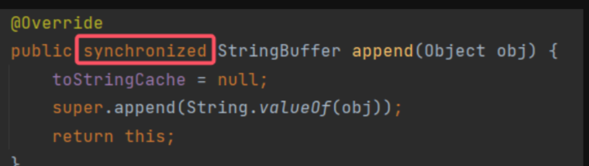 StringBuffer 的核心方法都带有 synchronized