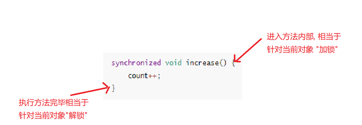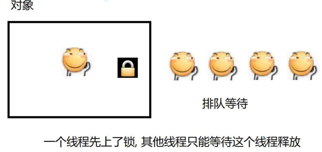可以粗略理解成,每个对象在内存中存储的时候,都存有⼀块内存表示当前的"锁定"状态(类似于厕所 的"有人/无人"). 如果当前是"无人"状态,那么就可以使用,使用时需要设为"有人"状态. 如果当前是"有人"状态,那么其他人无法使用,只能排队