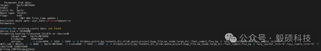 这是部署的关键步骤,使用 mkfs.lustre 命令。