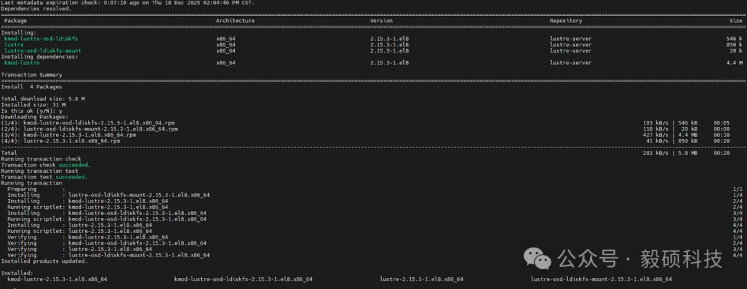 dnf install -y lustre lustre-osd-ldiskfs-mount kmod-lustre-osd-ldiskfs