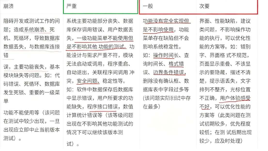 同样的,bug级别⼀般分为:崩溃、严重、一般、次要