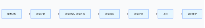 需求分 析 | 测试计划 | 测试设计与开发 | 测试执行 | 测试评估 | 上线 | 运行维护 |
